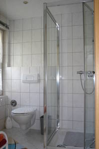 Das Bad ist mit einem WC, einer Dusche, einem Handtuchtrockner und mit Fußbodenheizung ausgestattet.Handtücher stellen wir Ihnen fürIhren Aufenthalt zur Verfügung.